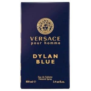 El frasco de Versace Dylan Blue es una obra de arte en sí mismo. Con un diseño en vidrio azul profundo y el icónico medallón de la cabeza de Medusa en el frente, el frasco transmite poder, elegancia y distinción. Un detalle que combina lujo y mitología en cada botella.